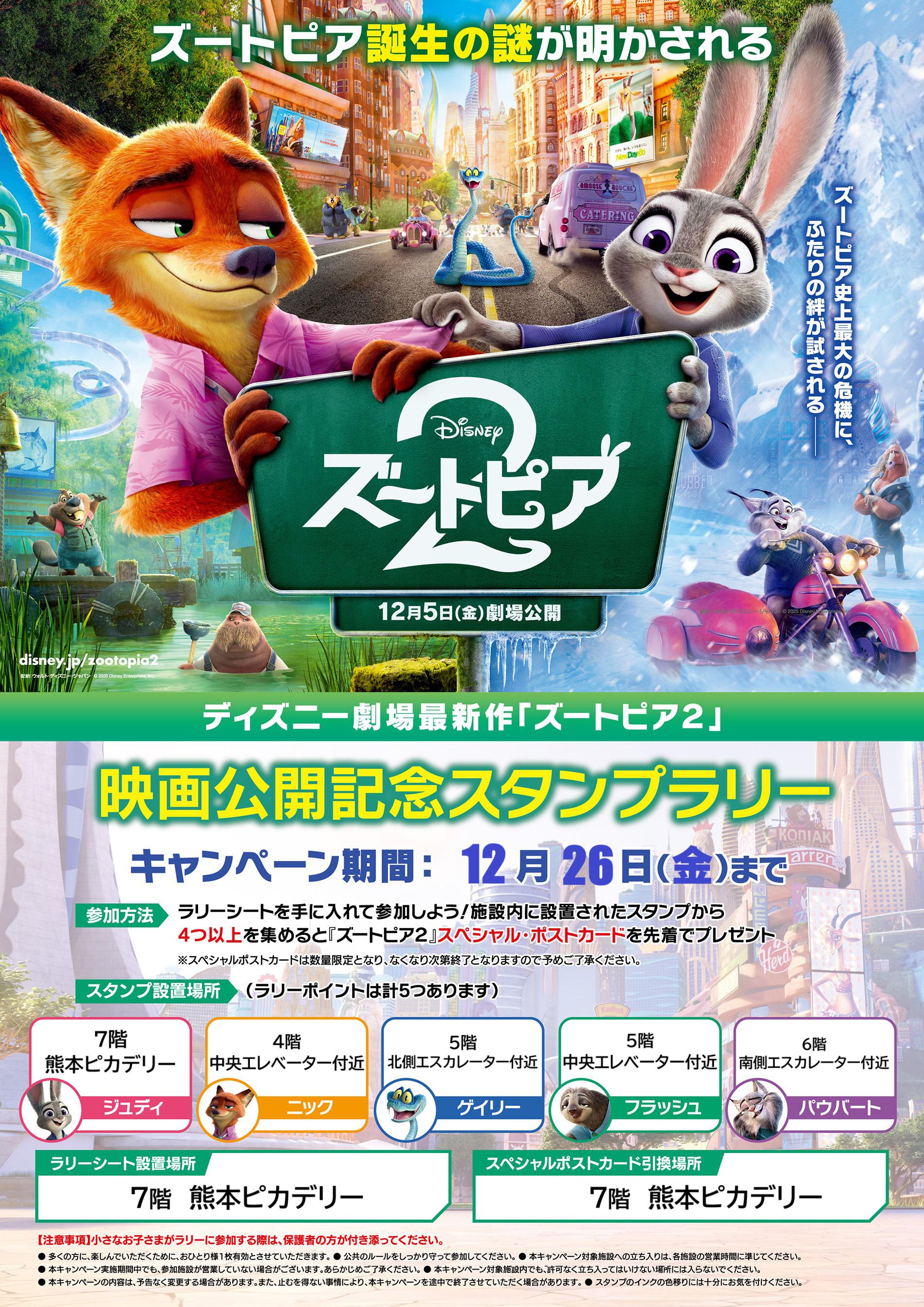 12/5(金)『ズートピア2』の公開を記念し、アミュプラザくまもと館内にてスタンプラリーを開催いたします。