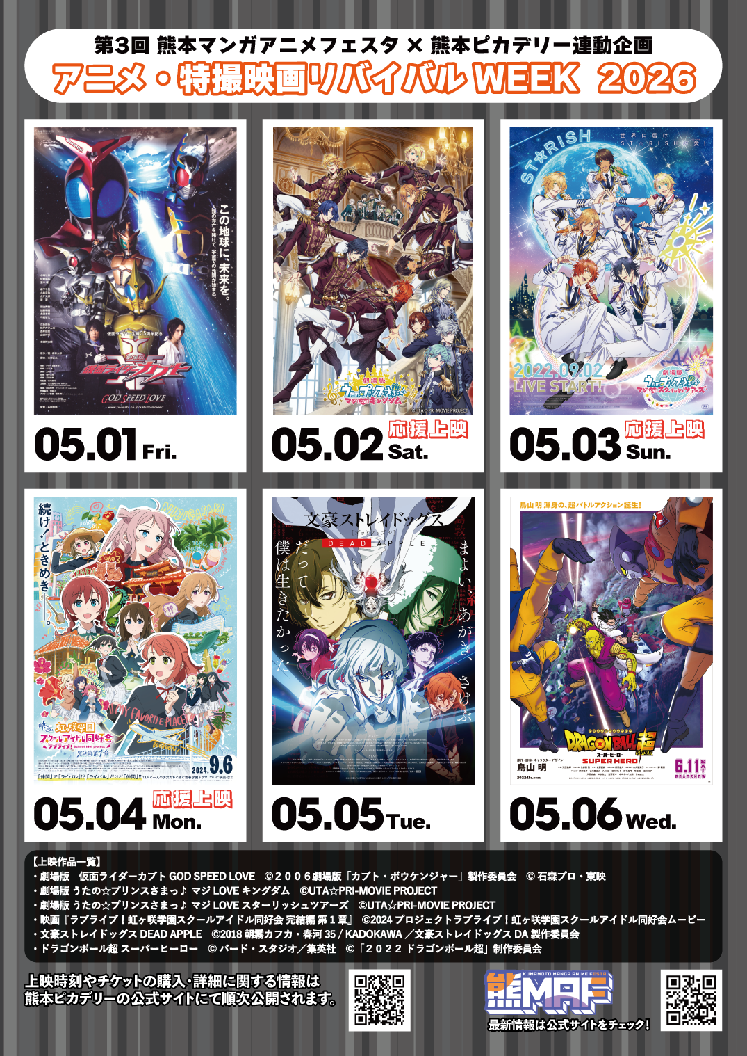 第3回 熊本マンガアニメフェスタ×熊本ピカデリー連動企画 アニメ·特撮映画リバイバル WEEK 2026の開催が決定いたしました!