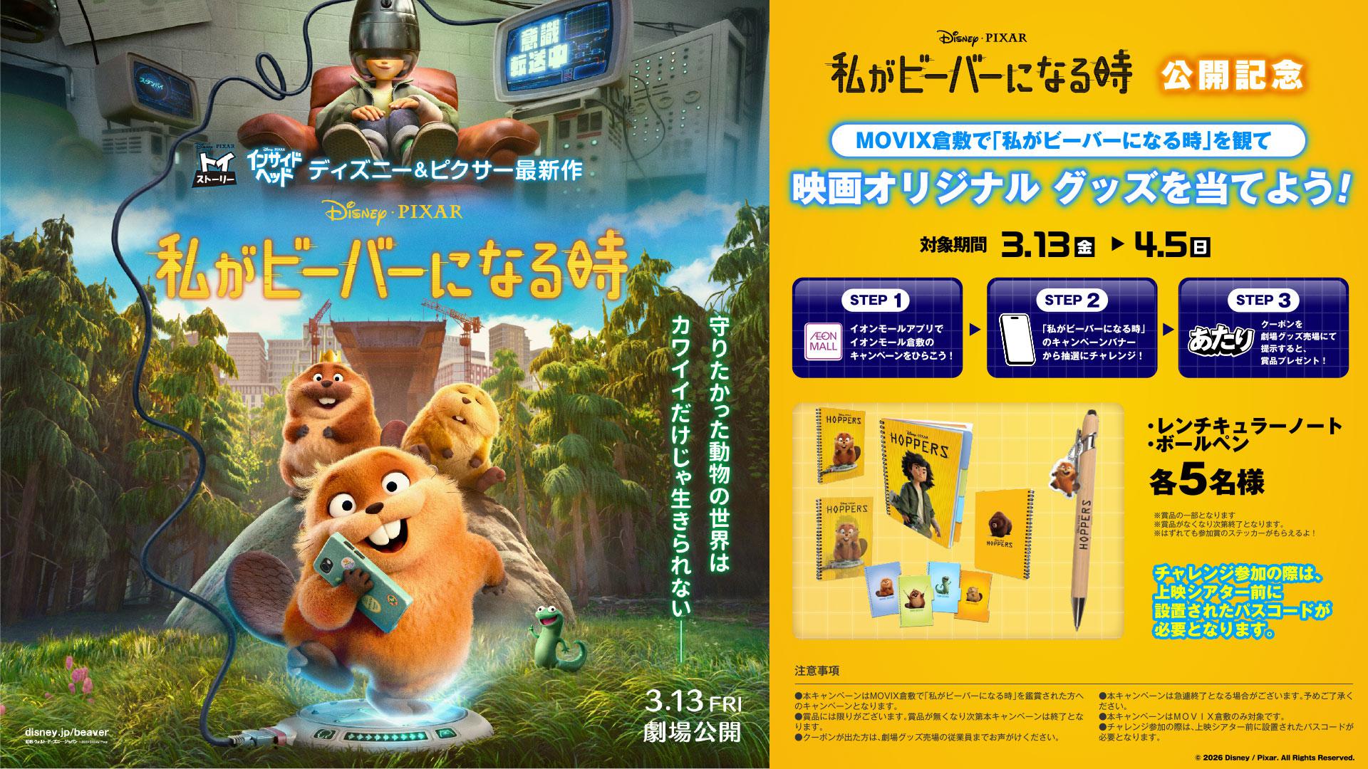 ディズニー&ピクサー最新作「私がビーバーになる時」の映画公開を記念して、MOVIX倉敷にて プレゼントキャンペーンをおこないます!