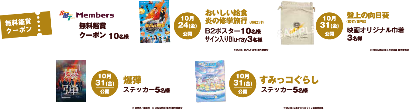 期間中、SMTMembers会員として映画を鑑賞すると映画グッズや無料鑑賞クーポンなど豪華賞品が当たる!!