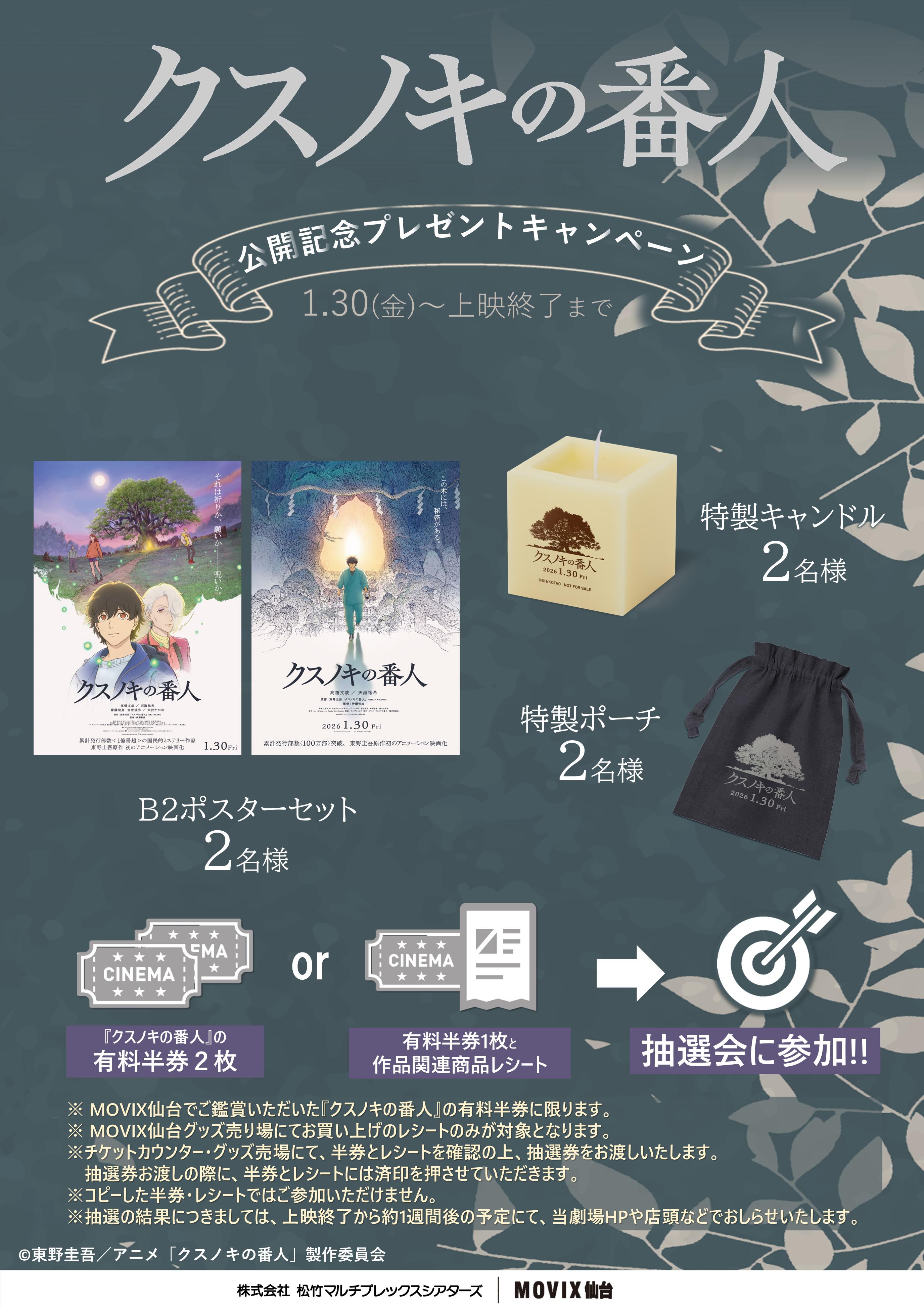 ※MOVIX仙台でご鑑賞いただいた「クスノキの番人」の有料半券に限ります。