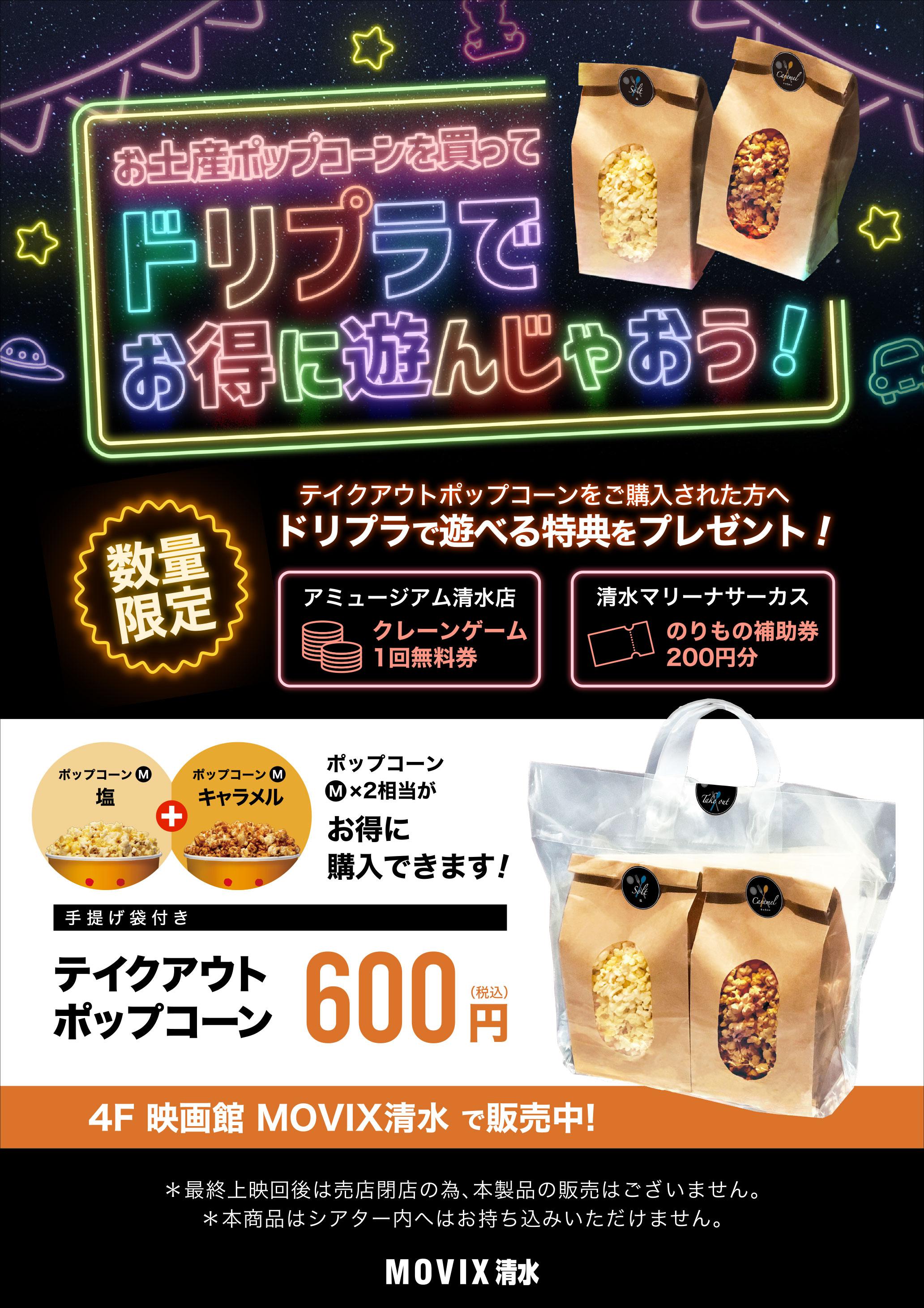 10月6日(月)より、4F MOVIX清水でテイクアウトポップコーンをご購入された方へ、 清水エスパルスドリームプラザで遊べる特典をプレゼント致します!