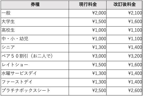 しかしながら、昨今のエネルギー価格の高騰や円安による仕入れコストの上昇、人件費を中心とした運営コストや各種設備投資への負担増等に伴い、企業努力のみで現行の価格体系を維持するのは困難であると判断し、鑑賞料金を改定させて頂くことになりました。