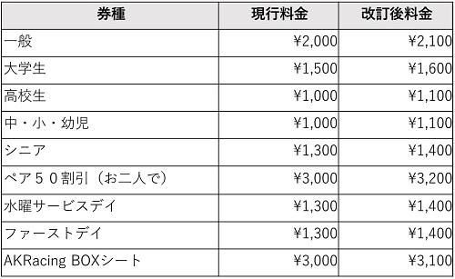 ・プラチナルーム、プラチナシートの鑑賞料金改定はございません。