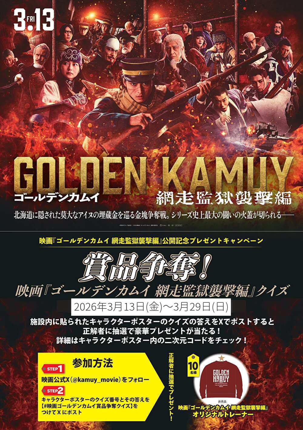 『ゴールデンカムイ 網走監獄襲撃編』3/13(金)の公開を記念しまして、クイズ企画の実施が決定いたしました!!
